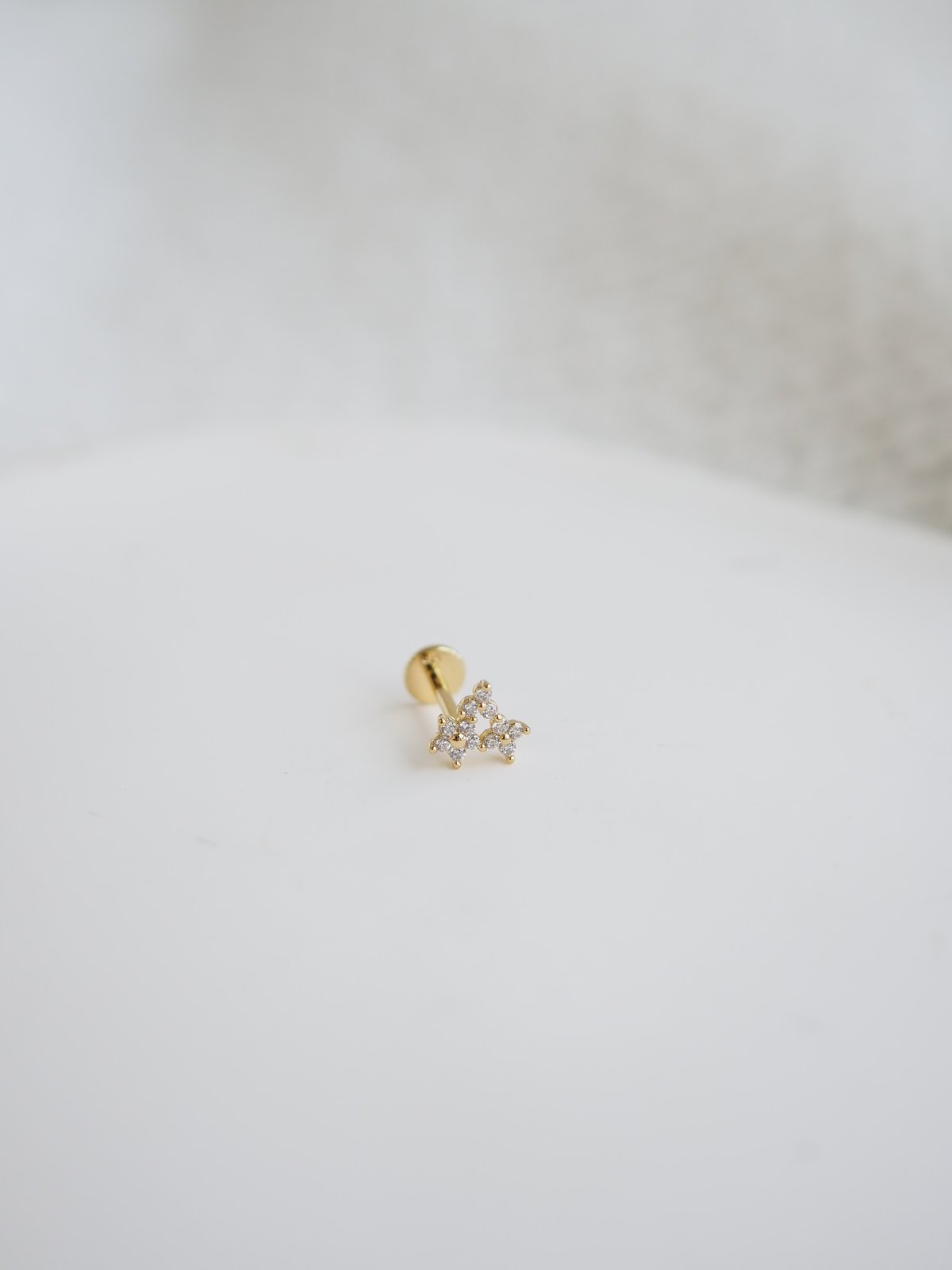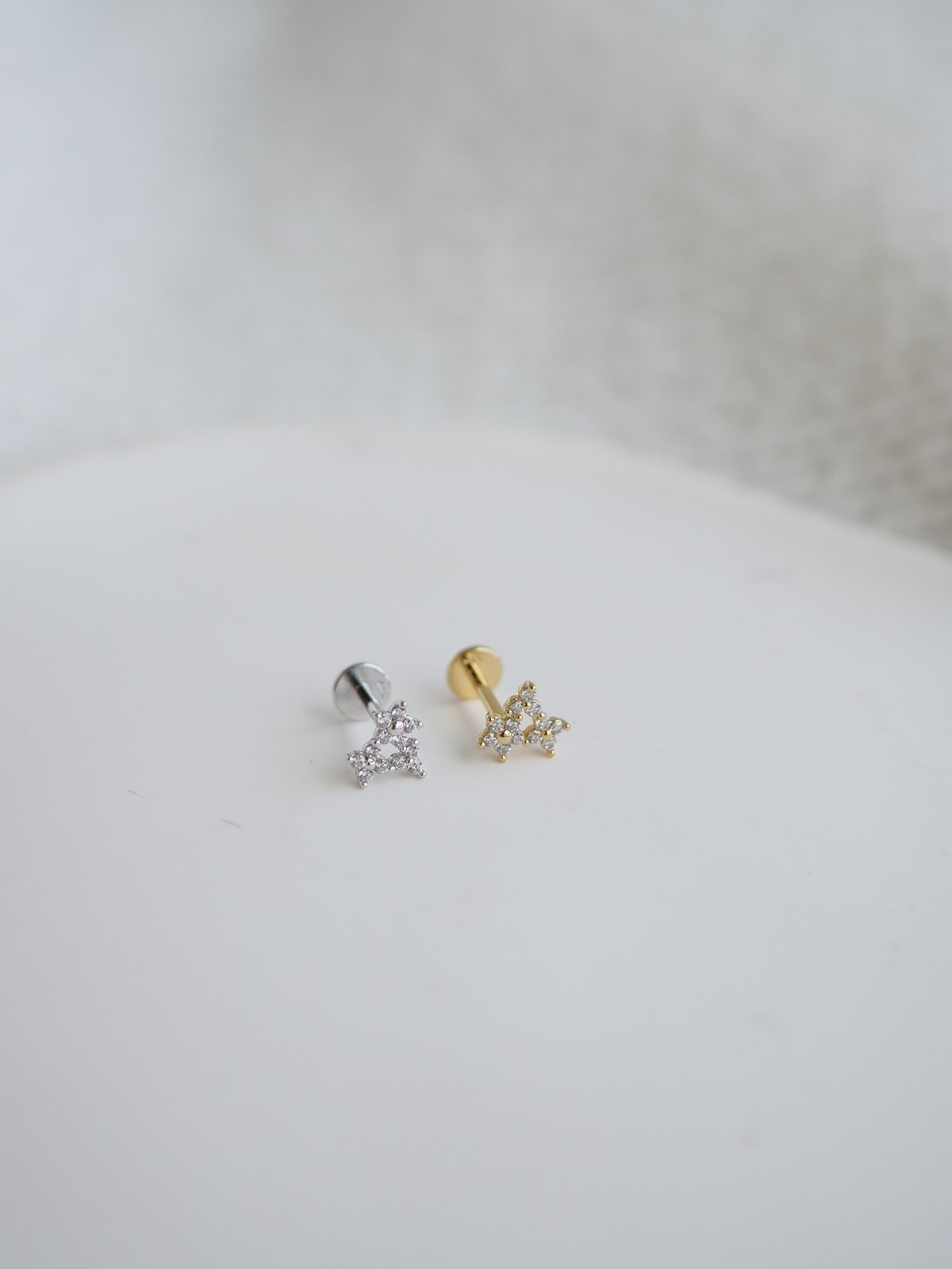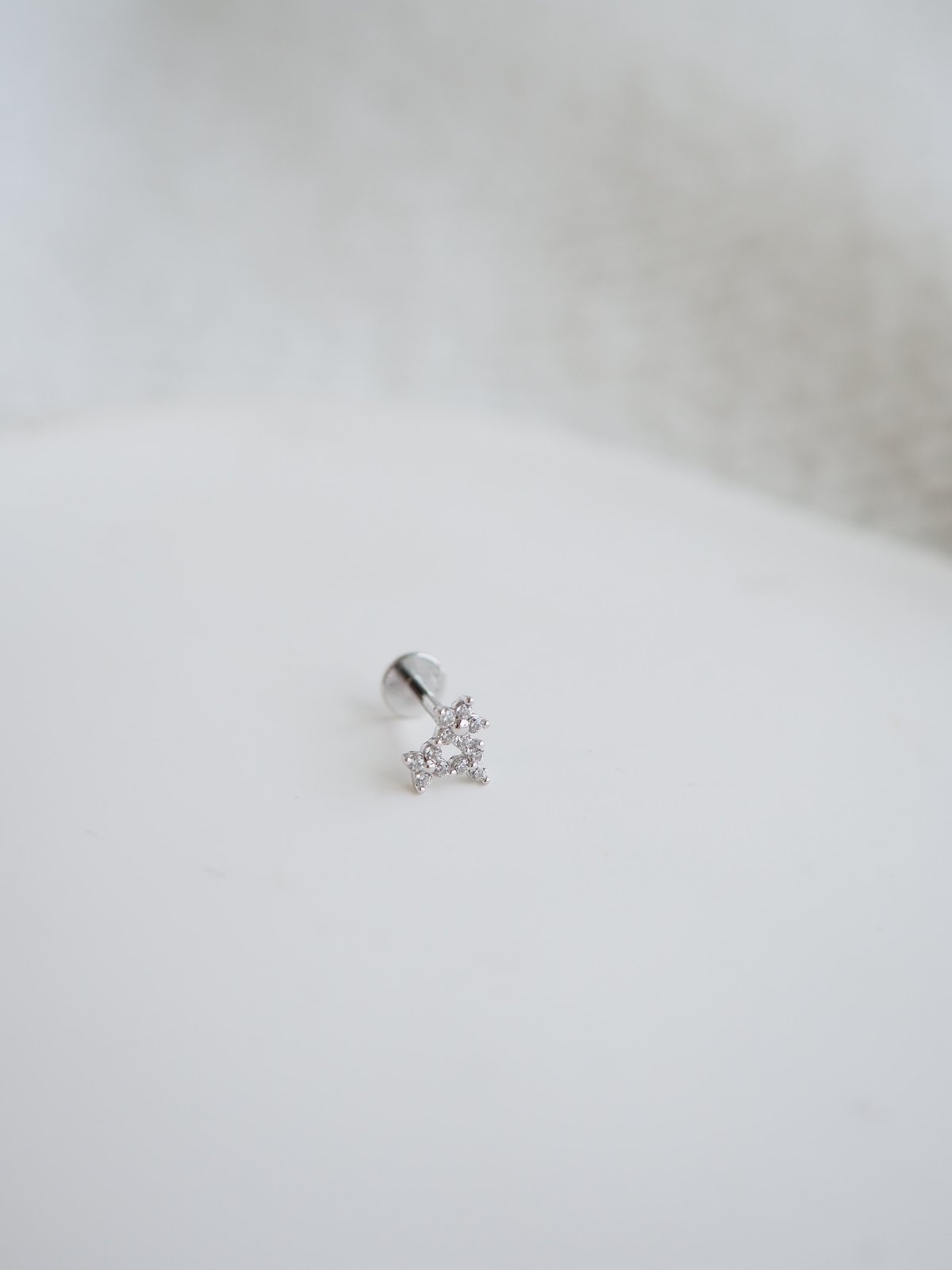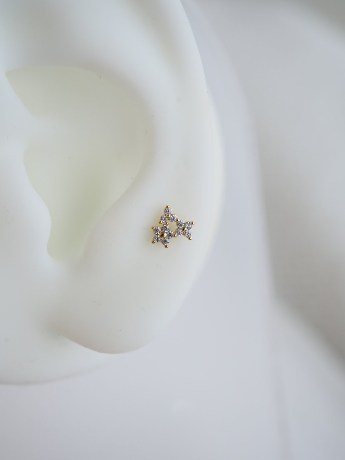 2. Insert the post: Slide the post through your piercing from the back of your earlobe or cartilage.