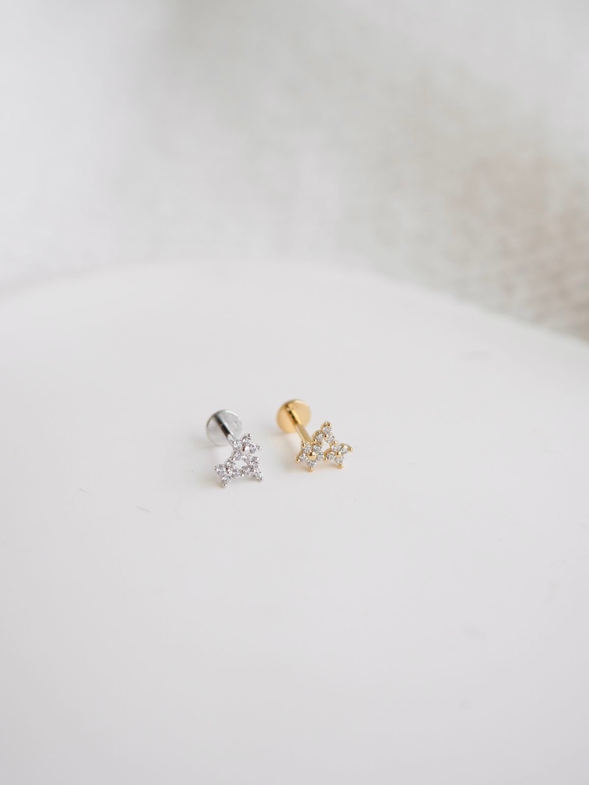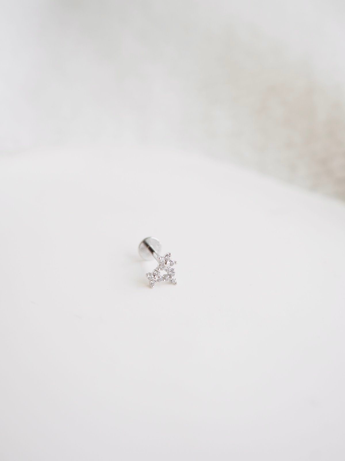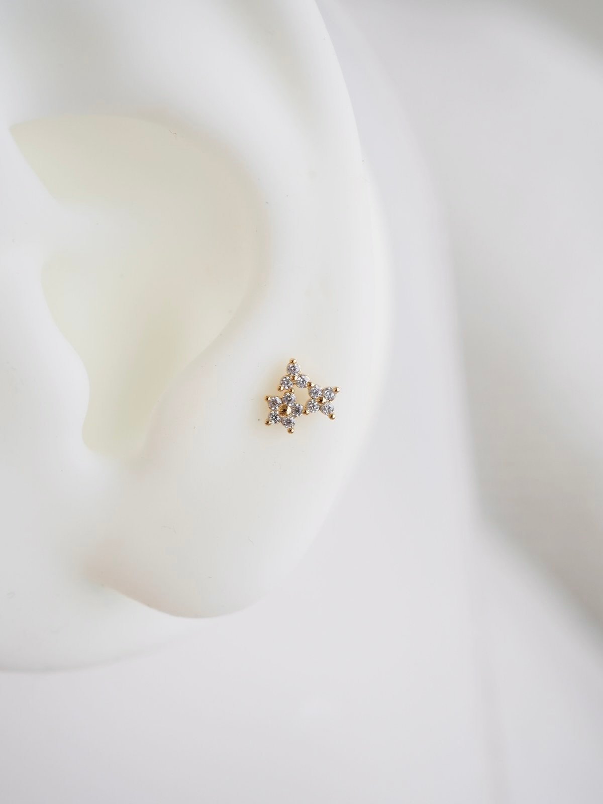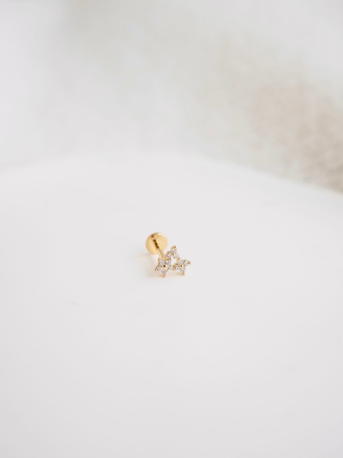 - Insert the post: Slide the post through your piercing from the back of your earlobe or cartilage.