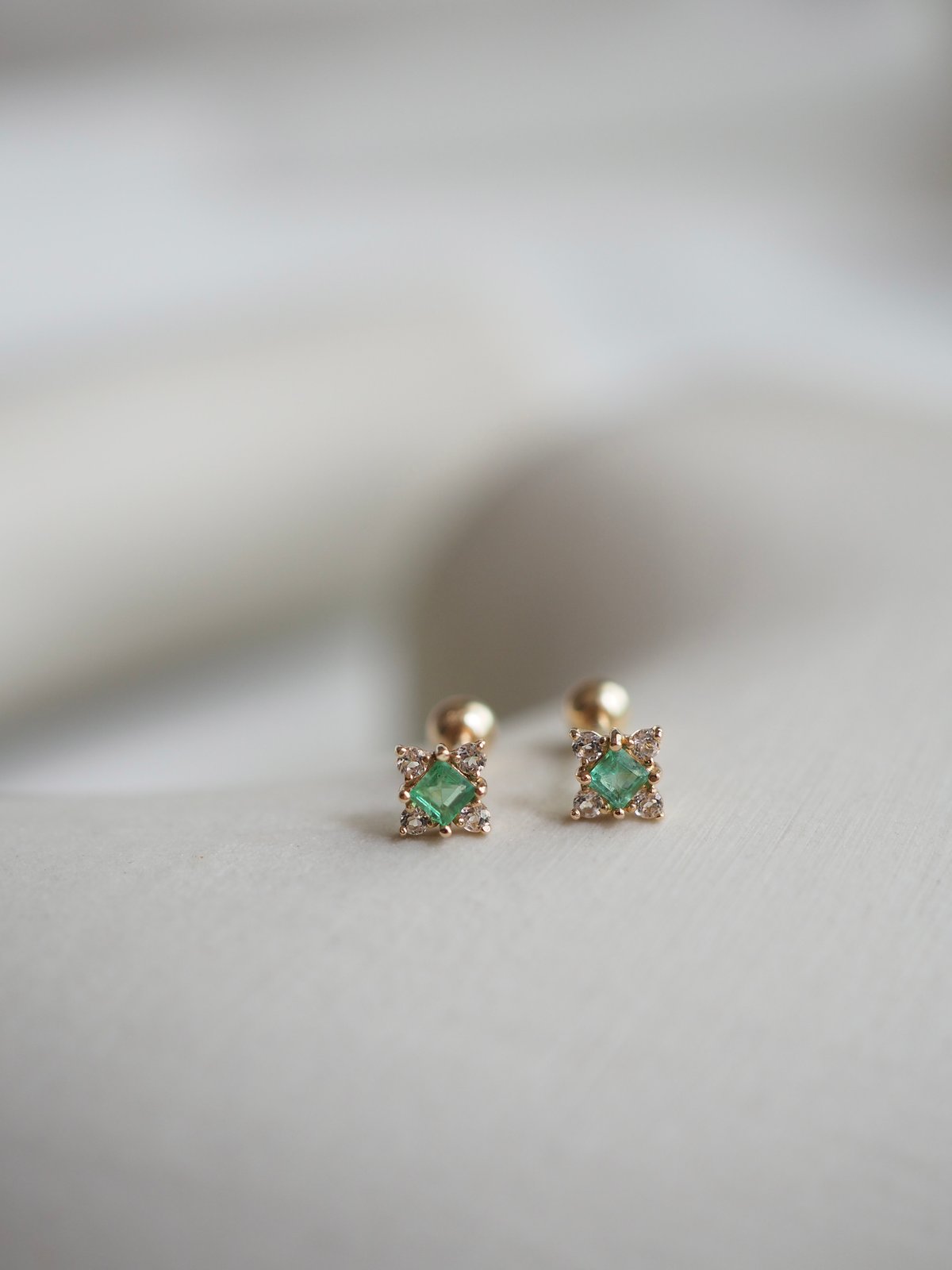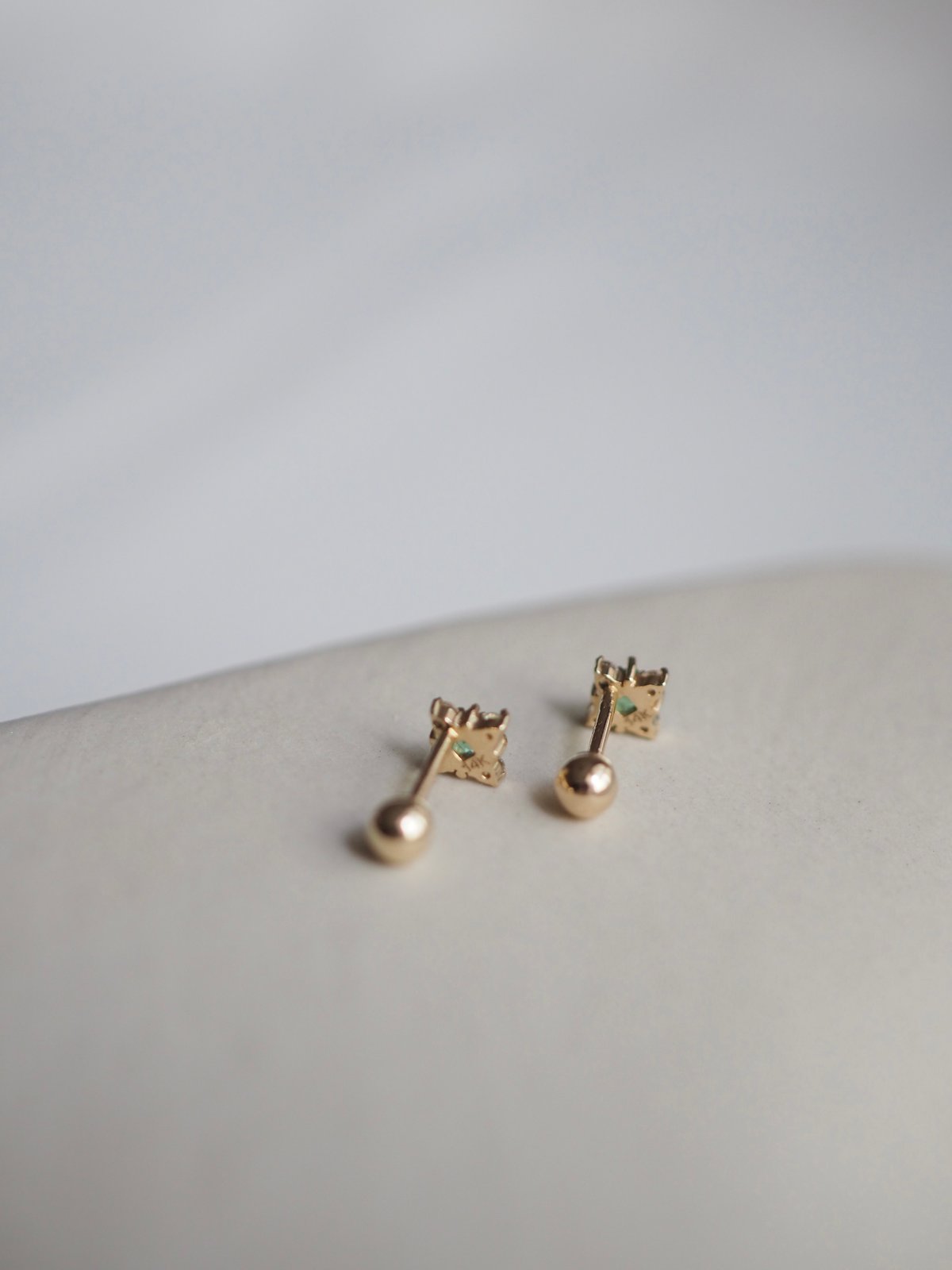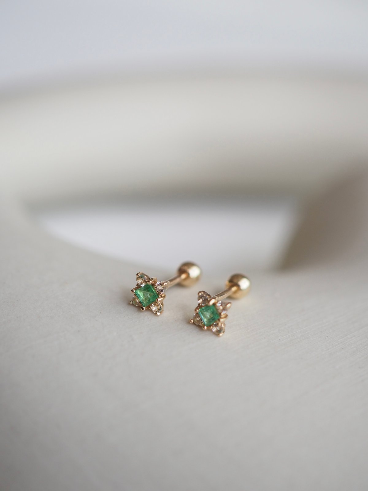 DAWN Barbell - Emerald in 14K Yellow Gold