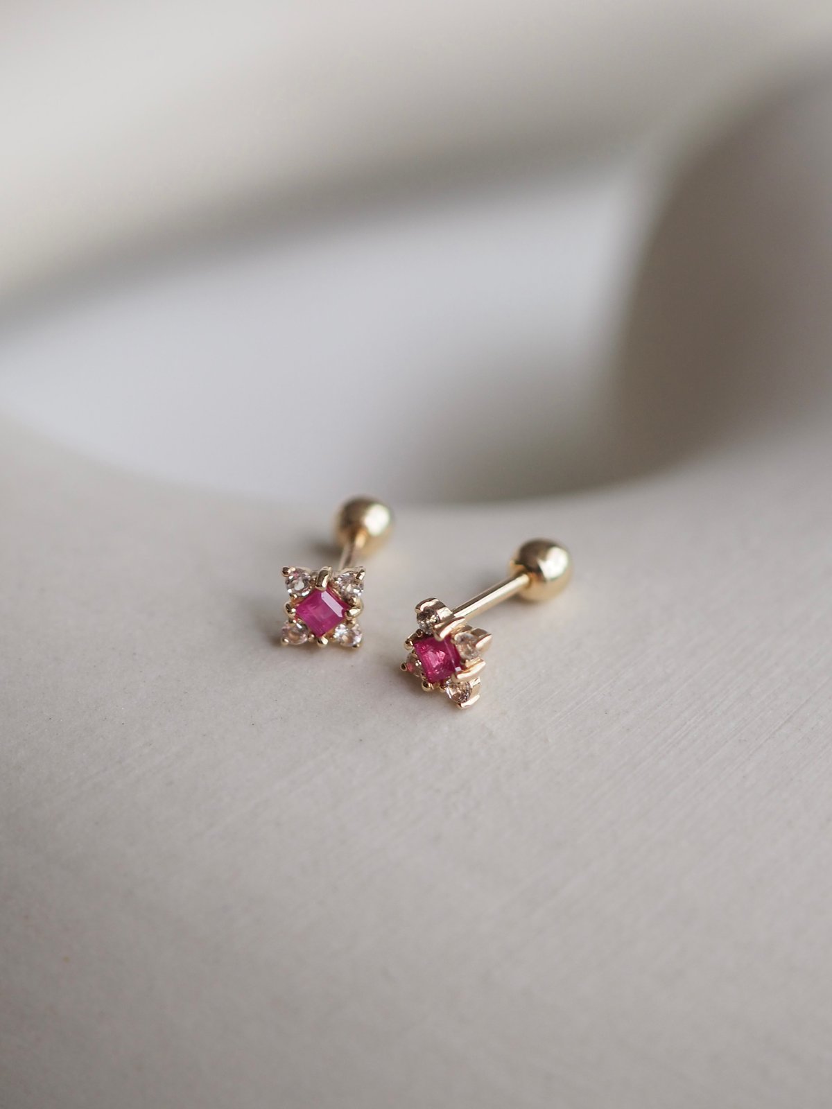 DAWN Barbell - Ruby in 14K Yellow Gold