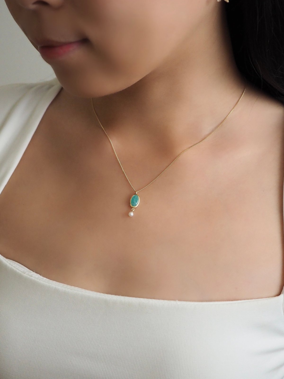 DREA Necklace - Amazonite (Yellow Gold)