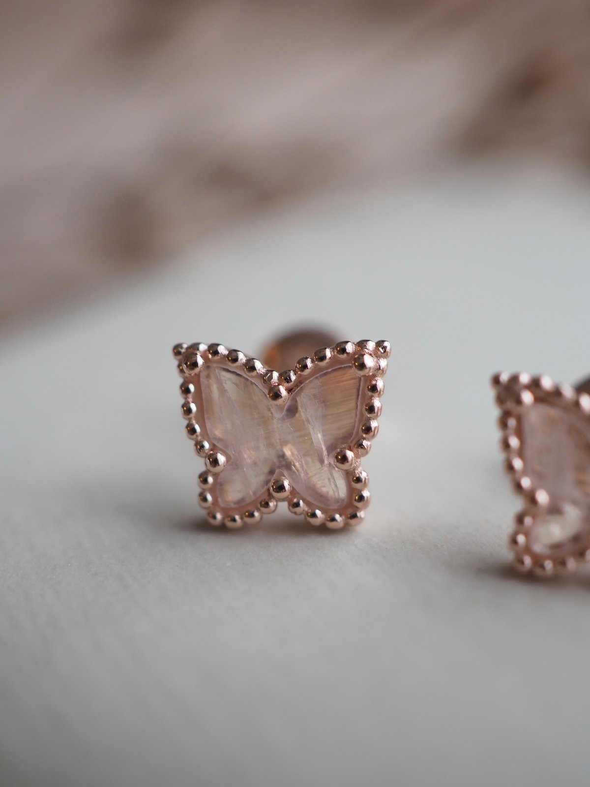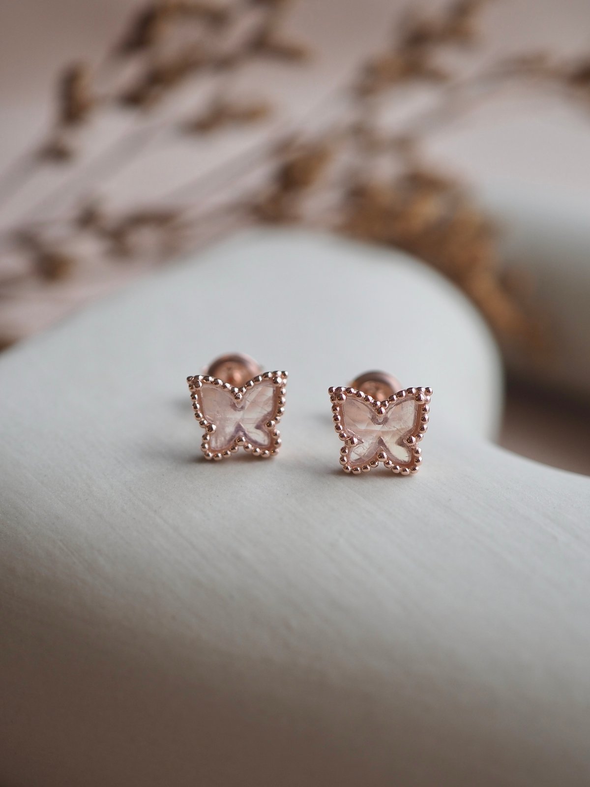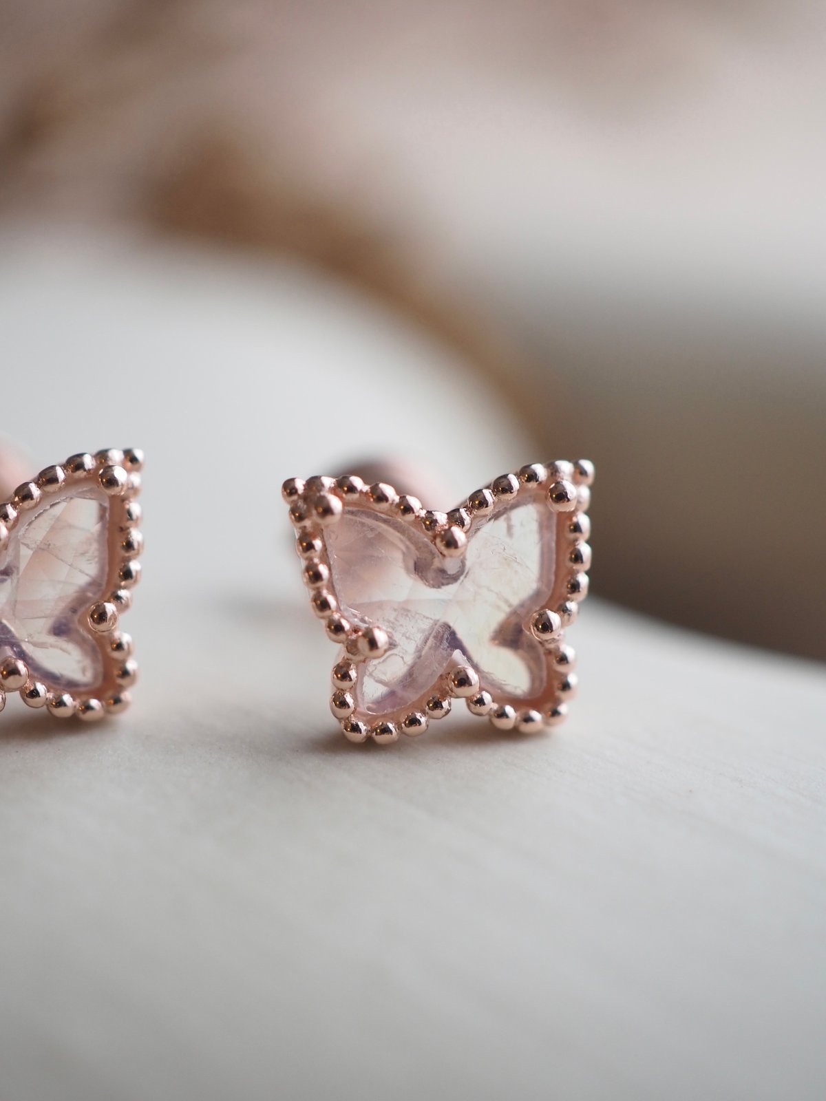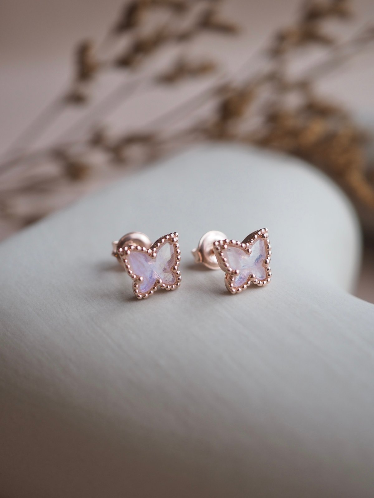 - 6MM Moonstone Rose Cut Dome Butterfly (Earrings size: 8MM x 9MM)