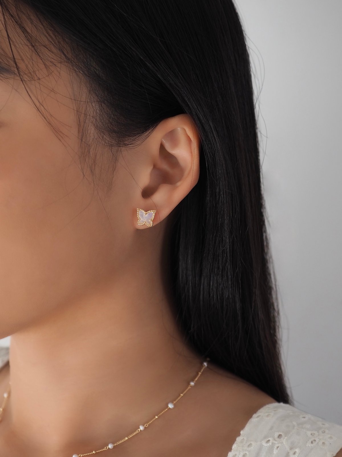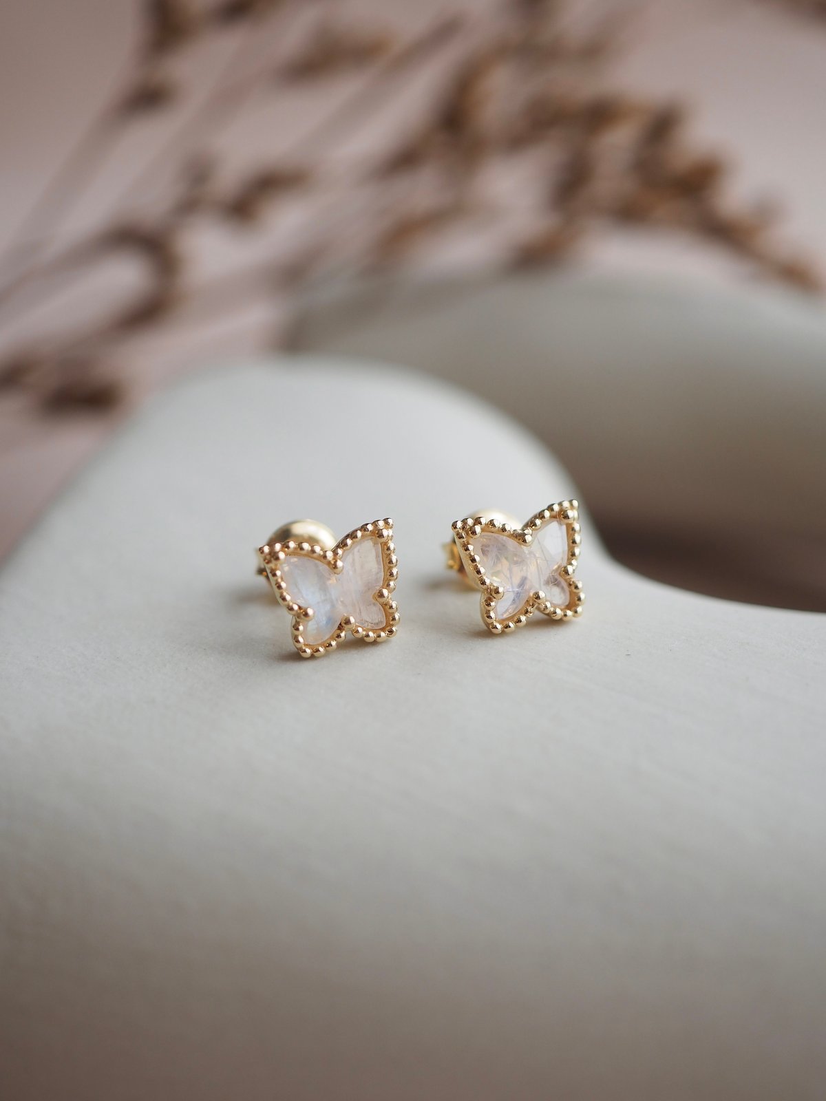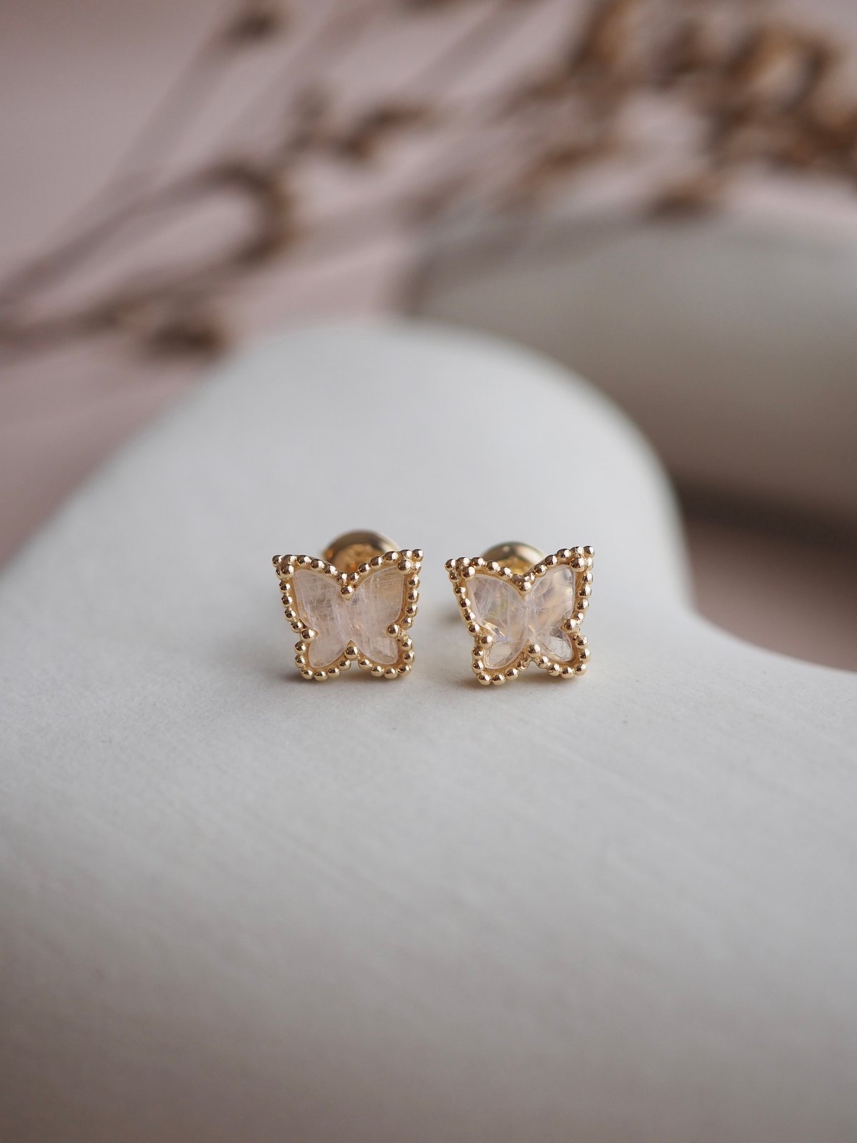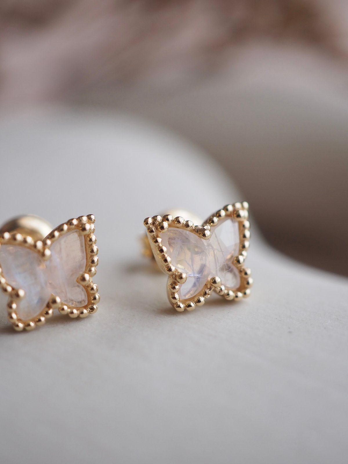 - 6MM Moonstone Rose Cut Dome Butterfly (Earrings size: 8MM x 9MM)