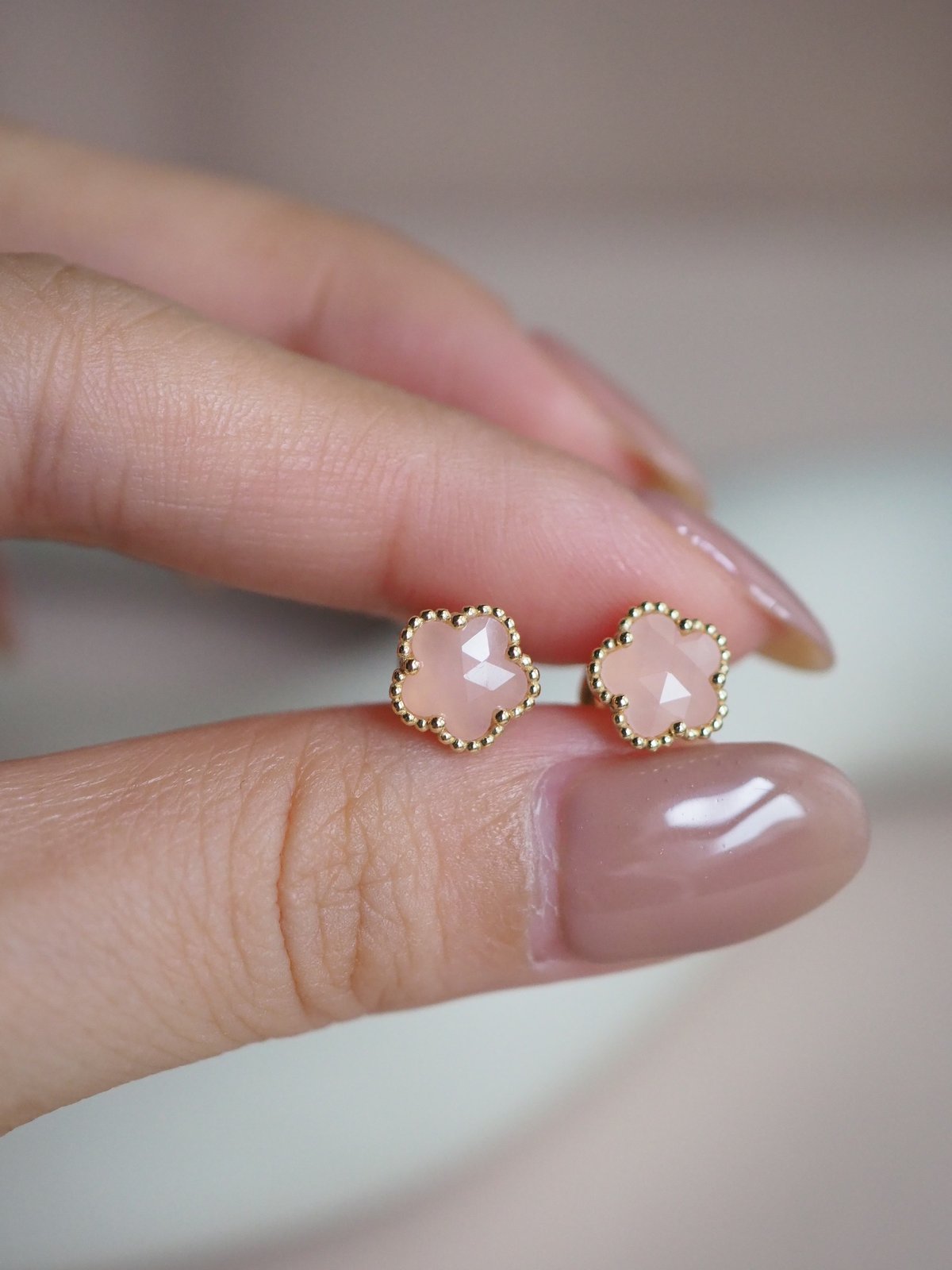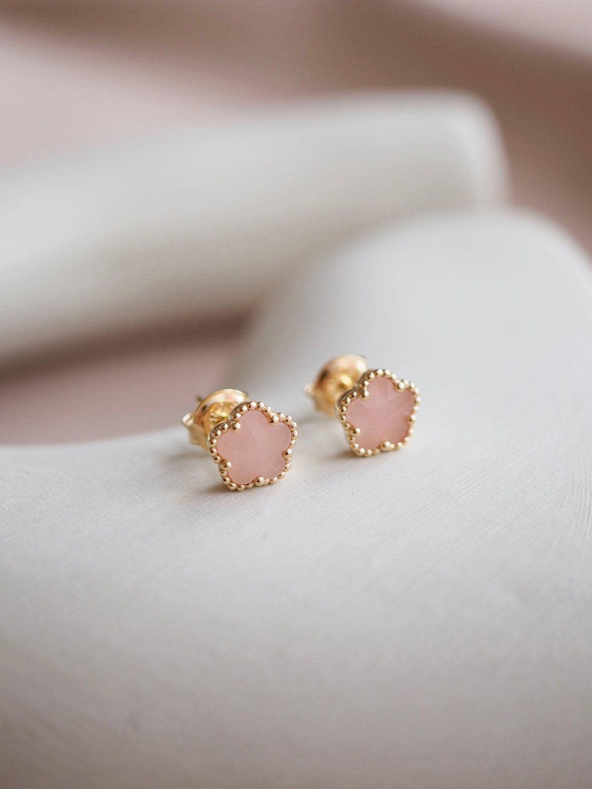 FAYE Earrings - Pink Quartz (Yellow Gold)