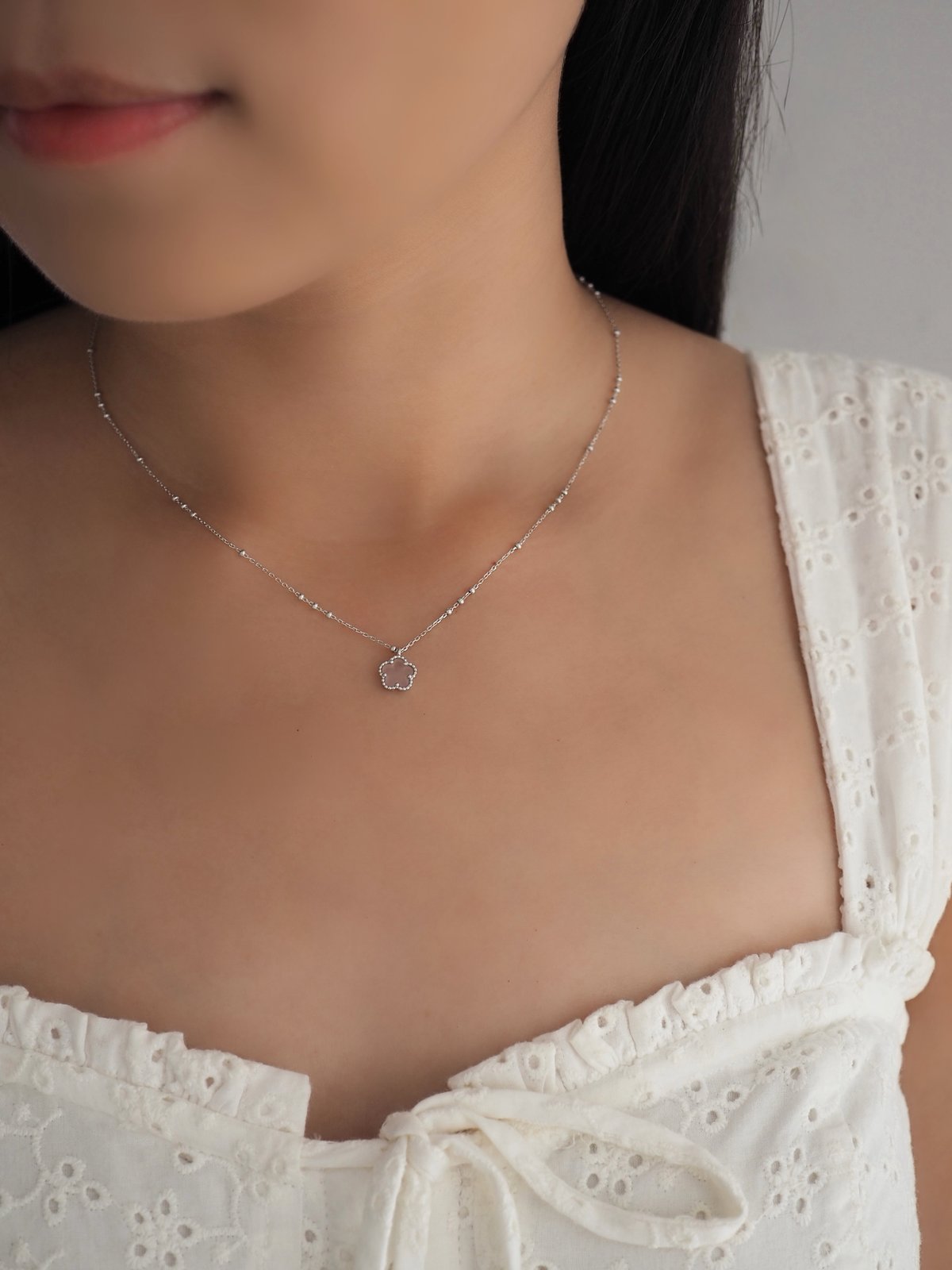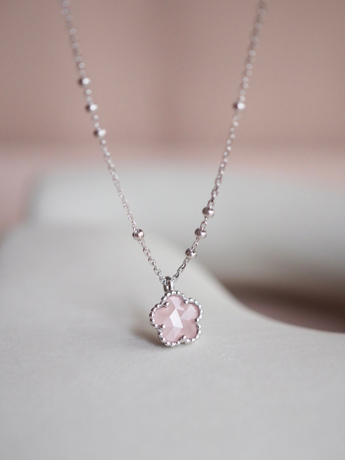 FAYE Necklace - Pink Quartz (Silver)