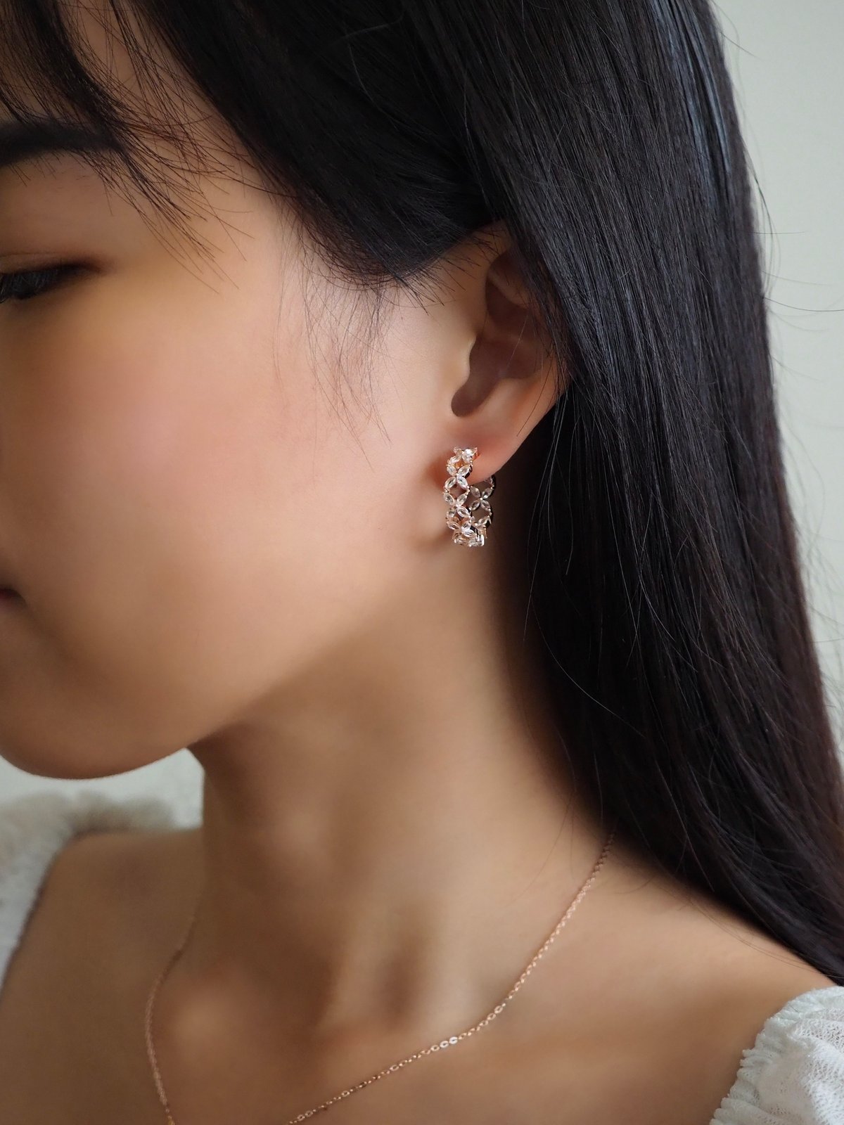 FLORET Large Hoops - White Topaz (Rose Gold)