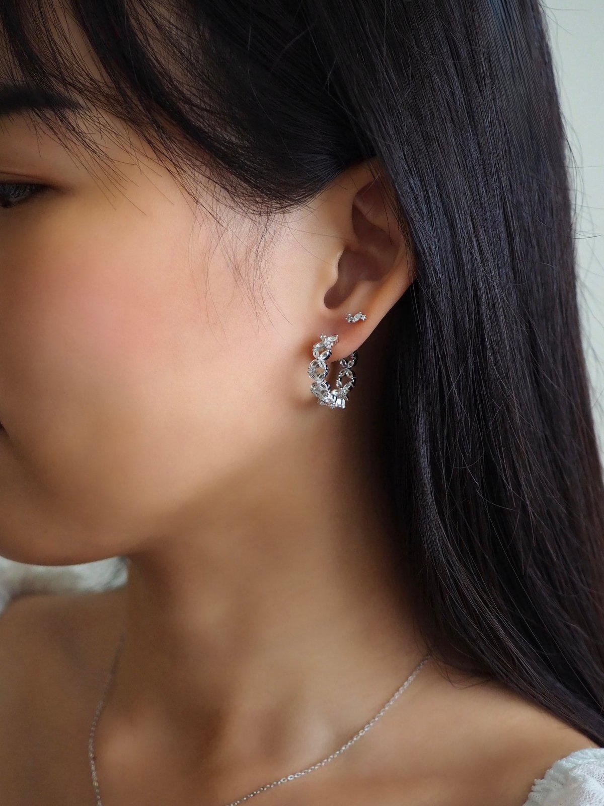 FLORET Large Hoops - White Topaz (Silver)