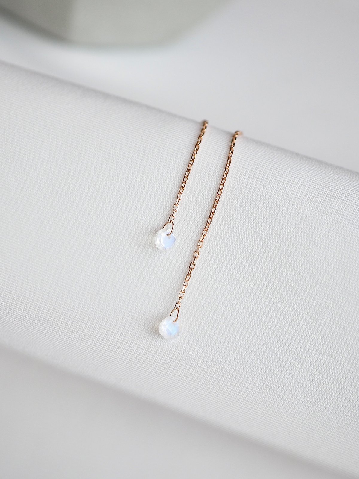 KERIN Threader Earrings - Moonstone (Rose Gold)