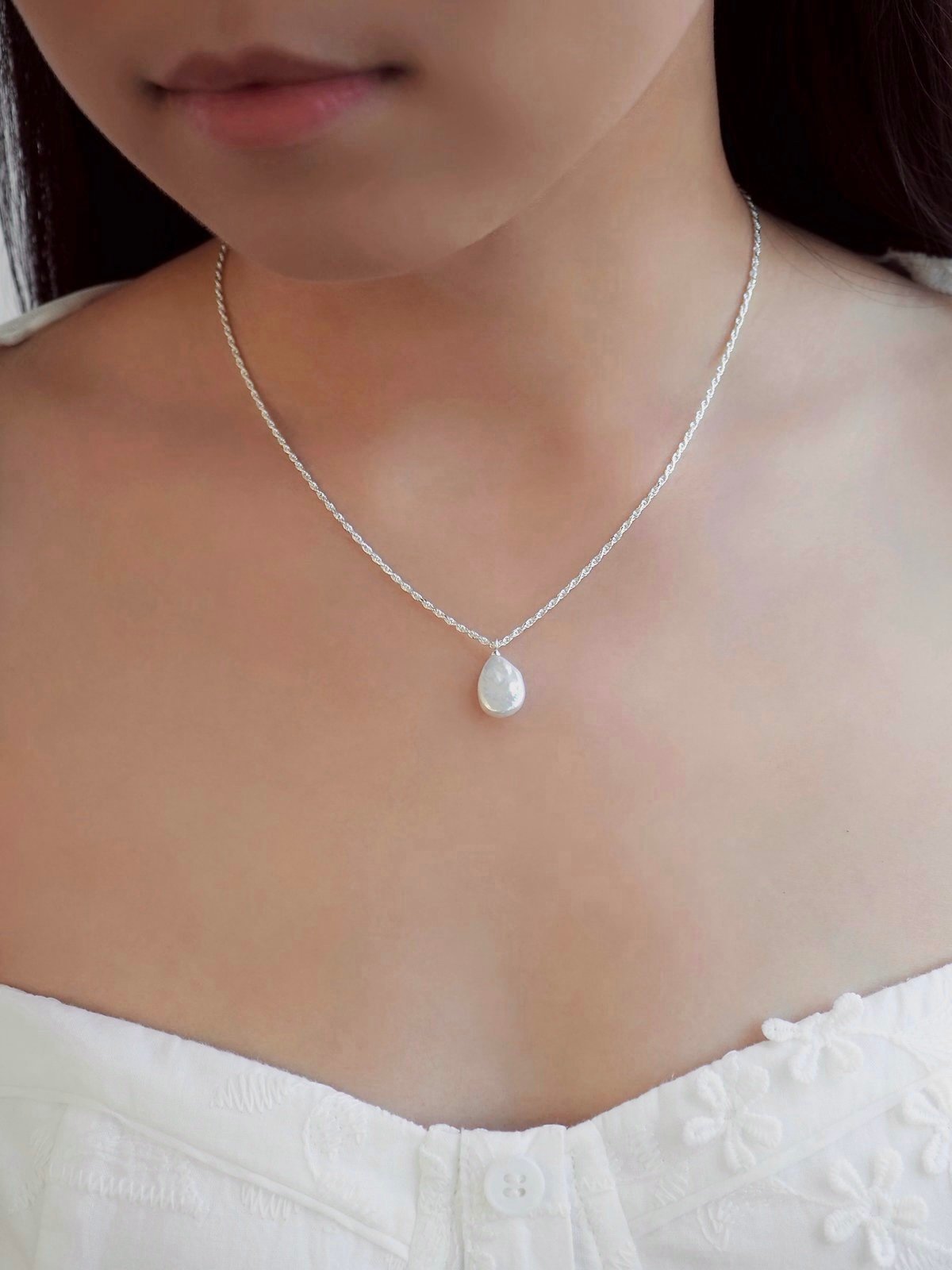 LIZZY Necklace - Pearl (Silver)